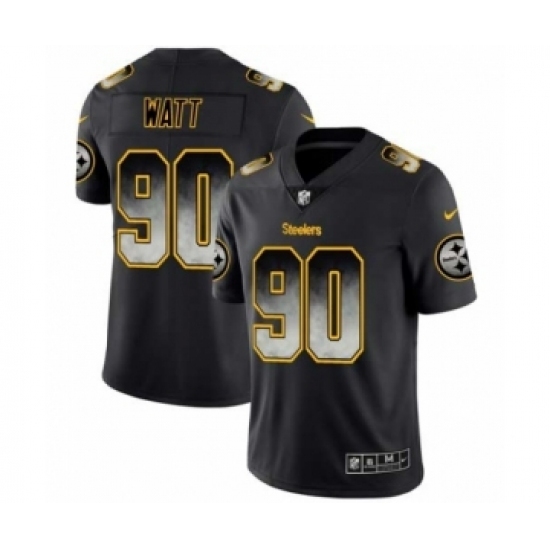 >Men Pittsburgh Steelers #90 T.J. Watt Black Smoke Fashion Limited Jersey