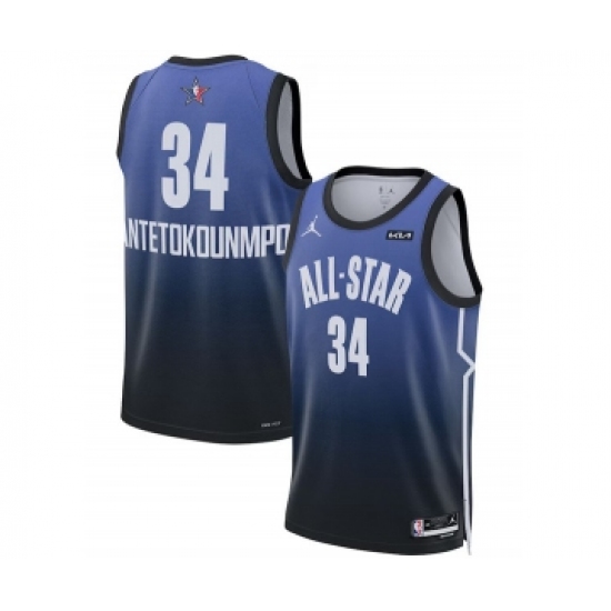 Men's 2023 All-Star #34 Giannis Antetokounmpo Blue Game Swingman Stitched Basketball Jersey