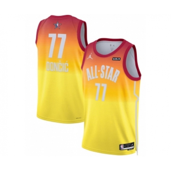 Men's 2023 All-Star #77 Luka Doncic Orange Game Swingman Stitched Basketball Jersey