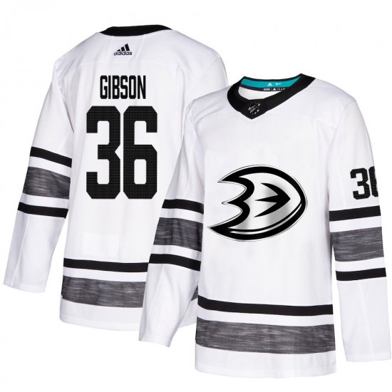 >Men's Adidas Anaheim Ducks #36 John Gibson White 2019 All-Star Game Parley Authentic Stitched NHL Jersey