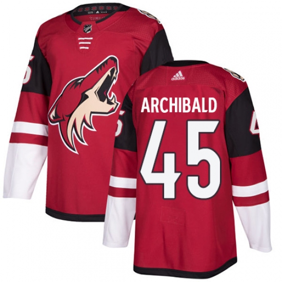 >Men's Adidas Arizona Coyotes #45 Josh Archibald Authentic Burgundy Red Home NHL Jersey