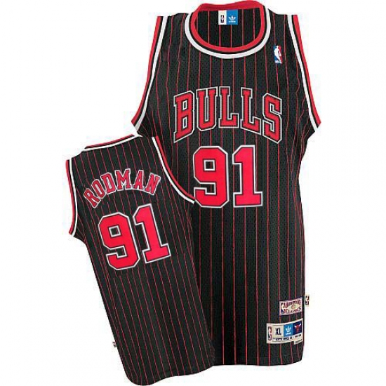 Men's Adidas Chicago Bulls #91 Dennis Rodman Authentic Black/Red Strip Throwback NBA Jersey
