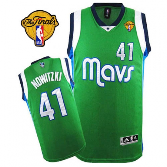 Home>NBA>Dallas Mavericks>Dirk Nowitzki>Men's Adidas Dallas Mavericks #41 Dirk Nowitzki Authentic Green Finals Patch NBA Jersey