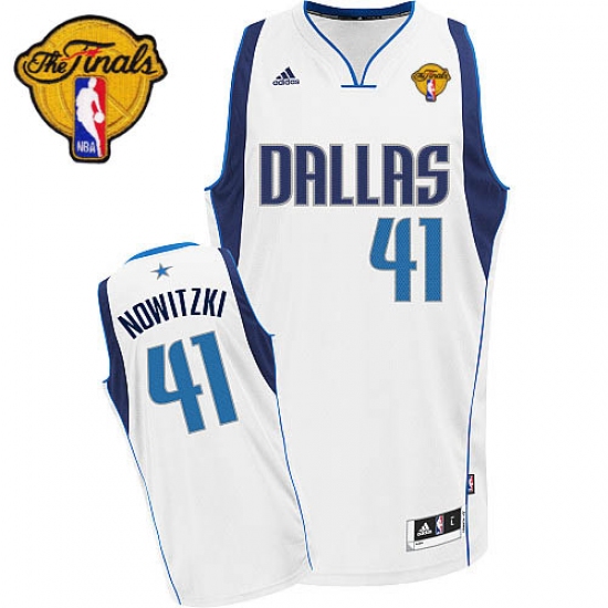 Home>NBA>Dallas Mavericks>Dirk Nowitzki>Men's Adidas Dallas Mavericks #41 Dirk Nowitzki Swingman White Home Finals Patch NBA Jersey