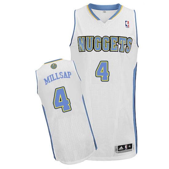 Home>NBA>Denver Nuggets>Paul Millsap>Men's Adidas Denver Nuggets #4 Paul Millsap Authentic White Home NBA Jersey