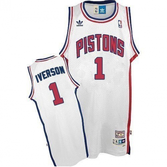 Men's Adidas Detroit Pistons #1 Allen Iverson Swingman White Throwback NBA Jersey