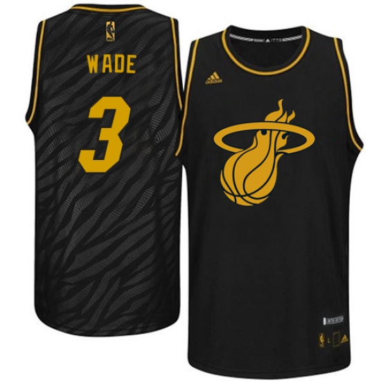 Men's Adidas Miami Heat #3 Dwyane Wade Authentic Black Precious Metals Fashion NBA Jersey