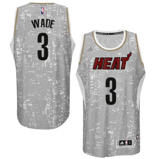 Men's Adidas Miami Heat #3 Dwyane Wade Swingman Grey City Light NBA Jersey