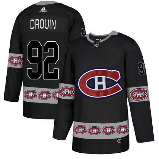 >Men's Adidas Montreal Canadiens #92 Jonathan Drouin Authentic Black Team Logo Fashion NHL Jersey
