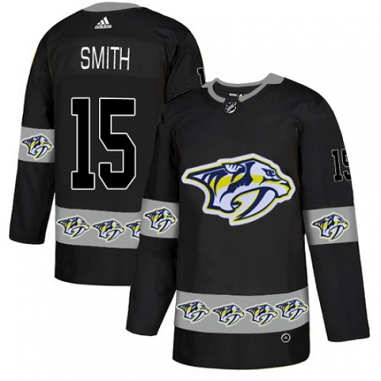 Men's Adidas Nashville Predators #15 Craig Smith Authentic Black Team Logo FashionNHL Jersey