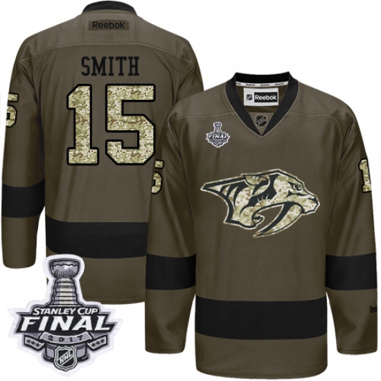 Home>NHL>Nashville Predators>Craig Smith>Men's Adidas Nashville Predators #15 Craig Smith Premier Green Salute to Service 2017 Stanley Cup Final NHL Jersey