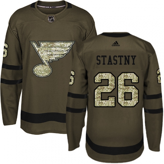 Home>NHL>St. Louis Blues>Paul Stastny>Men's Adidas St. Louis Blues #26 Paul Stastny Authentic Green Salute to Service NHL Jersey