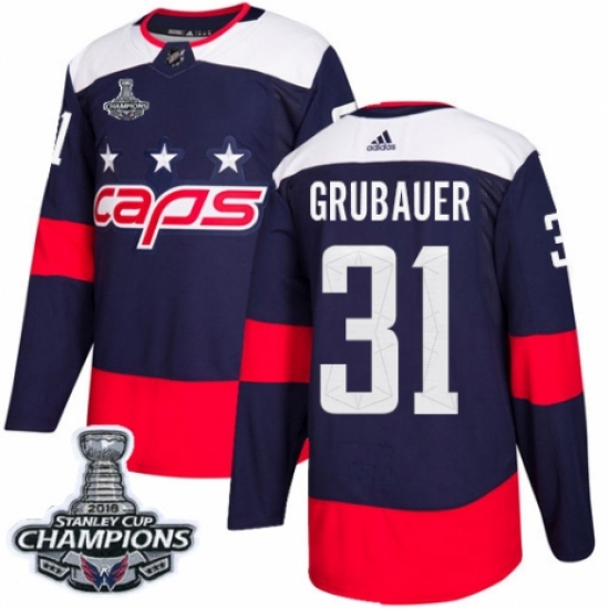 >Men's Adidas Washington Capitals #31 Philipp Grubauer Authentic Navy Blue 2018 Stadium Series 2018 Stanley Cup Final Champions NHL Jersey