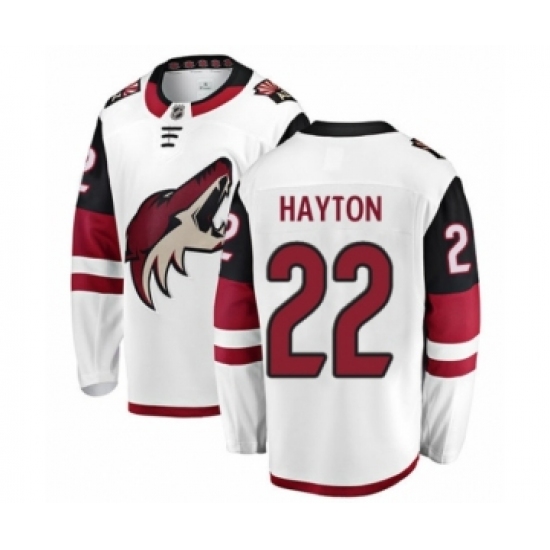 Men's Arizona Coyotes #22 Barrett Hayton Authentic White Away Fanatics Branded Breakaway NHL Jersey