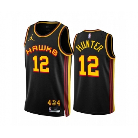 >Men's Atlanta Hawks #12 De'Andre Hunter 2022-23 Black Statement Edition Stitched Jersey