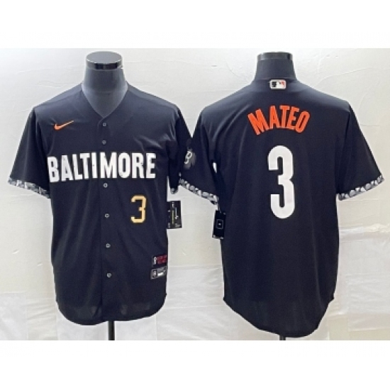 Men's Baltimore Orioles #3 Jorge Mateo Number Black 2023 City Connect Cool Base Stitched Jersey 2