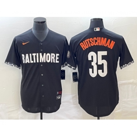 Men's Baltimore Orioles #35 Adley Rutschman Number Black 2023 City Connect Cool Base Stitched Jersey 1