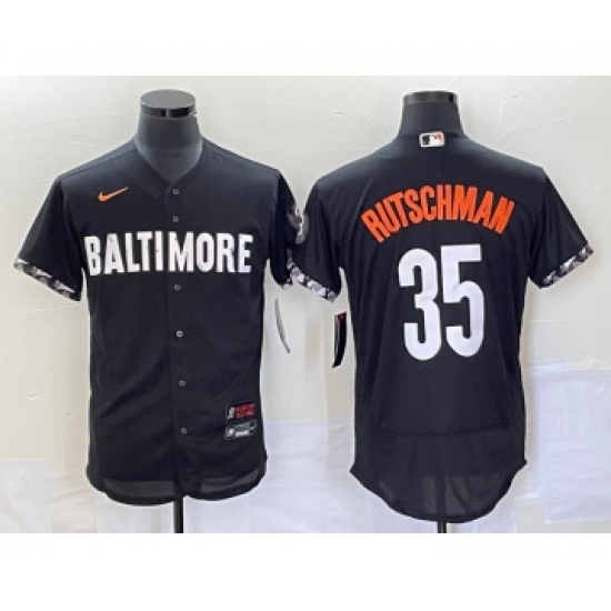 >Men's Baltimore Orioles #35 Adley Rutschman Black 2023 City Connect Flex Base Stitched Jersey 1