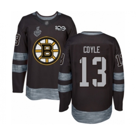 >Men's Boston Bruins #13 Charlie Coyle Authentic Black 1917-2017 100th Anniversary 2019 Stanley Cup Final Bound Hockey Jersey