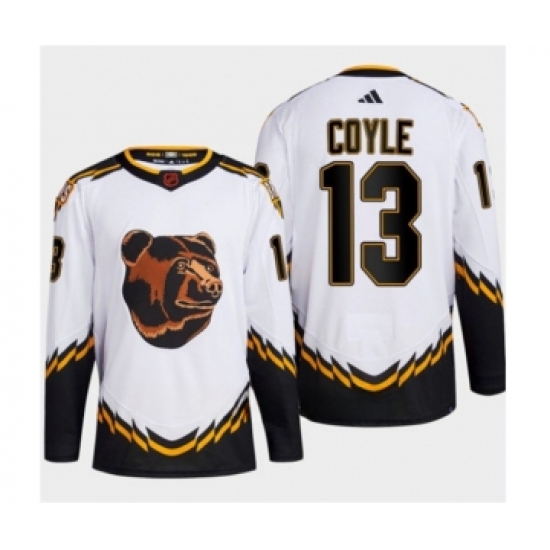 >Men's Boston Bruins #13 Charlie Coyle White 2022-23 Reverse Retro Stitched Jersey
