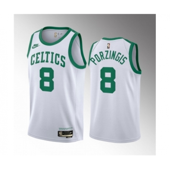 Men's Boston Celtics #8 Kristaps Porzingis White 2023 Draft Association Edition Stitched Basketball Jersey