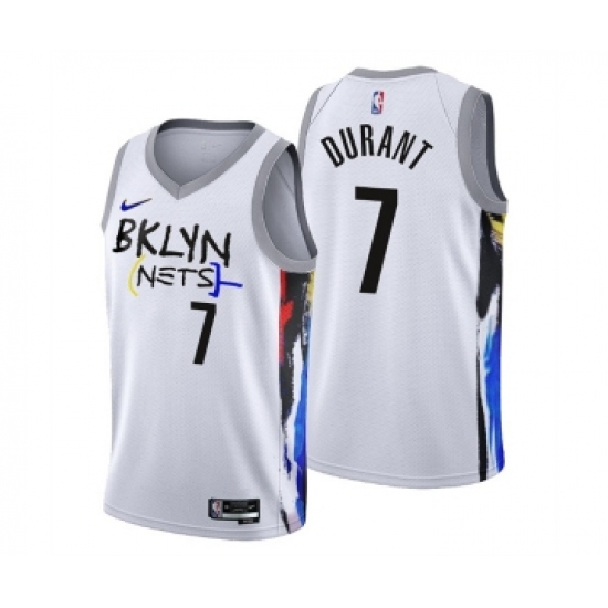 Men's Brooklyn Nets #7 Kevin Durant 2022-23 White City Edition Stitched Basketball Jersey