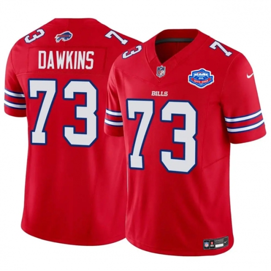 >Men's Buffalo Bills #73 Dion Dawkins Red 2025 F.U.S.E. With Farewell Vapor Untouchable Limited Football Stitched Jersey