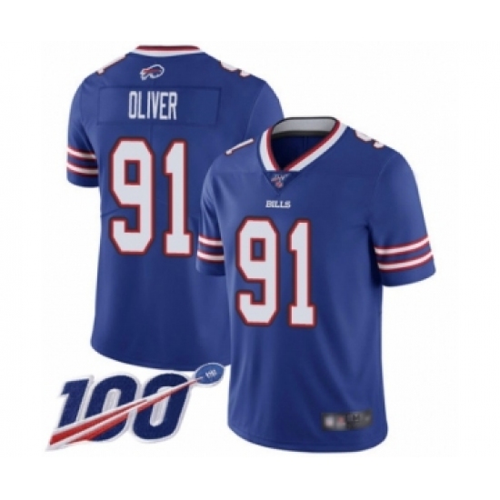 Men's Buffalo Bills #91 Ed Oliver Royal Blue Team Color Vapor Untouchable Limited Player 100th Season Football Jersey