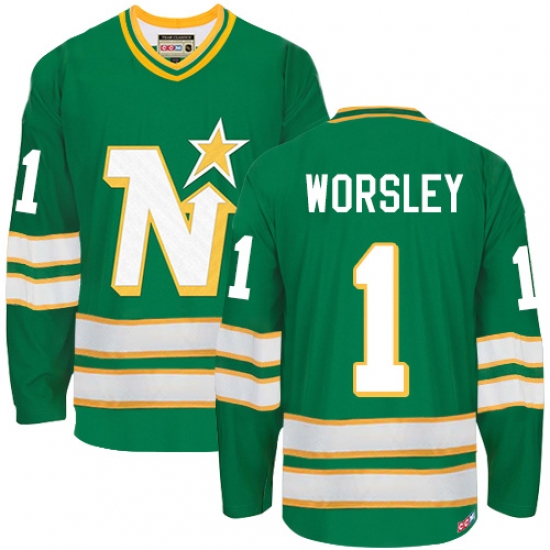 Men's CCM Dallas Stars #1 Gump Worsley Authentic Green Throwback NHL Jersey