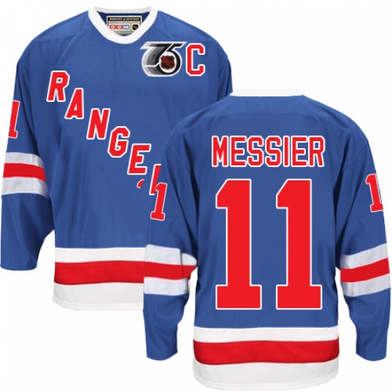 Men's CCM New York Rangers #11 Mark Messier Authentic Royal Blue 75TH Throwback NHL Jersey