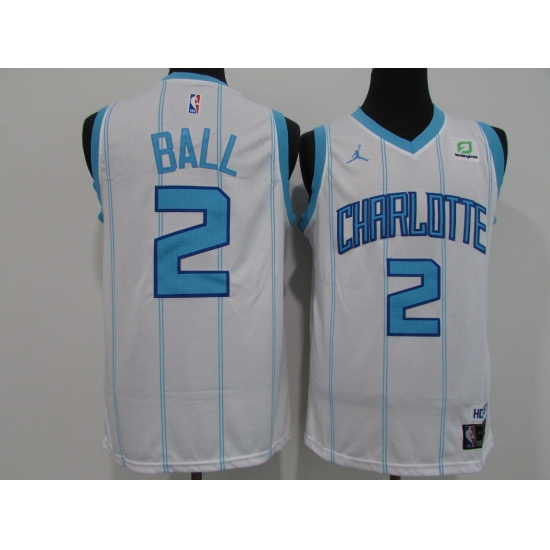 >Men's Charlotte Hornets #2 Lamelo Ball White Jordan Brand Teal 2020-21 Swingman Jersey