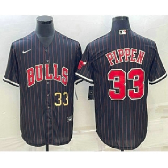 Men's Chicago Bulls #33 Scottie Pippen Number Black With Cool Base Stitched Baseball Jerseys