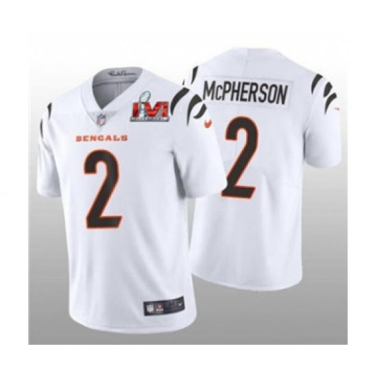 >Men's Cincinnati Bengals #2 Evan McPherson 2022 White Super Bowl LVI Vapor Limited Stitched Jersey