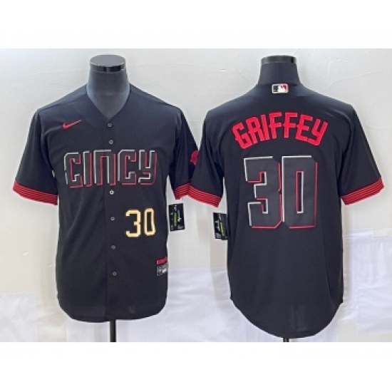 Men's Cincinnati Reds #30 Ken Griffey Jr Black 2023 City Connect Flex Base Stitched Jersey 1