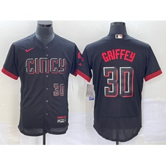 Men's Cincinnati Reds #30 Ken Griffey Jr Black 2023 City Connect Flex Base Stitched Jersey