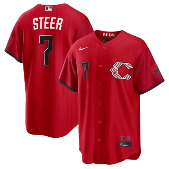 Men's Cincinnati Reds #7 Spencer Steer Red 2026 City Connect Stadium Stitched Baseball Jersey