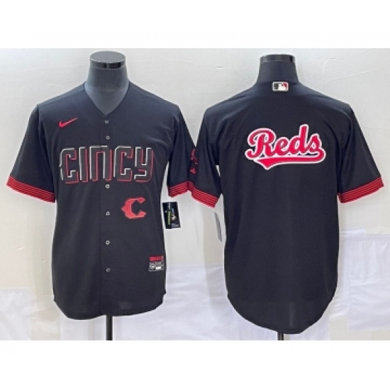 Men's Cincinnati Reds Big Logo Black 2023 City Connect Cool Base Stitched Jersey