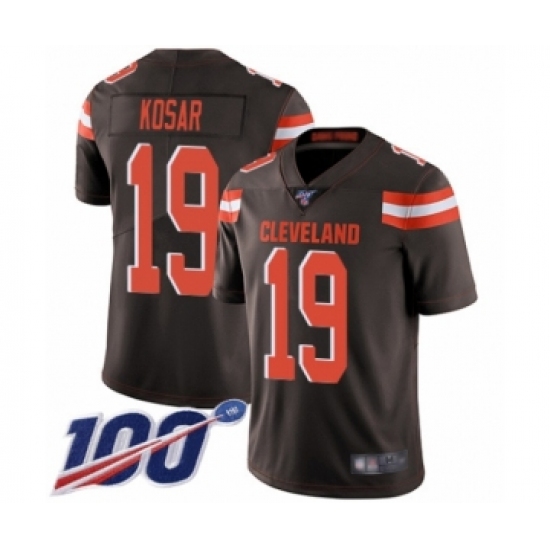 >Men's Cleveland Browns #19 Bernie Kosar Brown Team Color Vapor Untouchable Limited Player 100th Season Football Jersey
