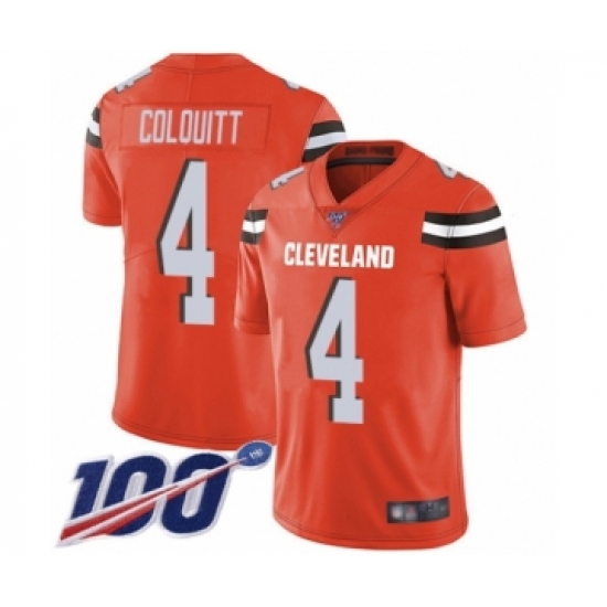 >Men's Cleveland Browns #4 Britton Colquitt Orange Alternate Vapor Untouchable Limited Player 100th Season Football Jersey