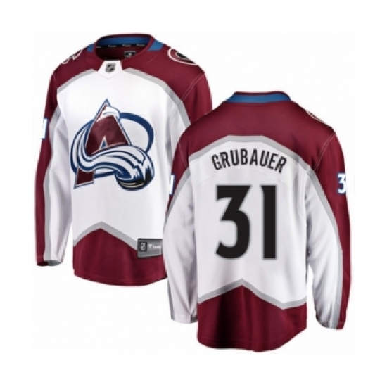Men's Colorado Avalanche #31 Philipp Grubauer Authentic White Away Fanatics Branded Breakaway NHL Jersey