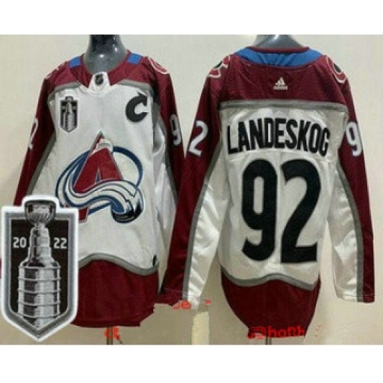Men's Colorado Avalanche #92 Gabriel Landeskog White 2022 Stanley Cup Final Stitched Jersey