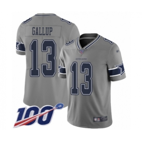 >Men's Dallas Cowboys #13 Michael Gallup Limited Gray Inverted Legend 100th Season Football Jersey