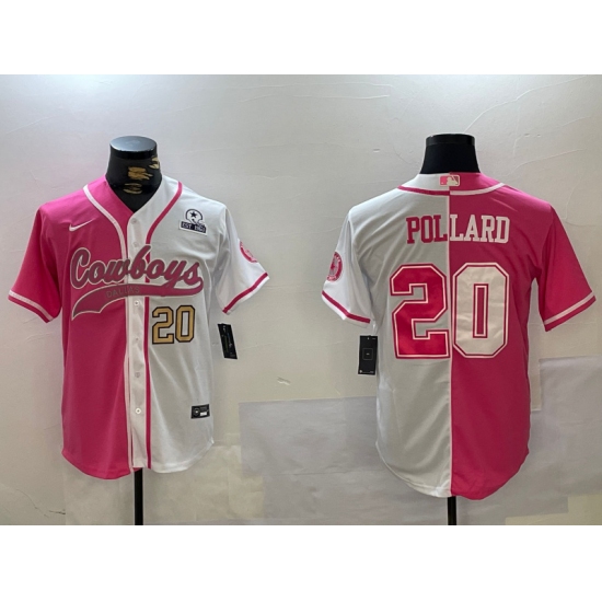 Men's Dallas Cowboys #20 Tony Pollard Red White With Cool Base Stitched Baseball Jerseys