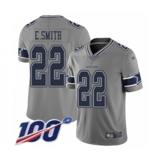 >Men's Dallas Cowboys #22 Emmitt Smith Limited Gray Inverted Legend 100th Season Football Jersey