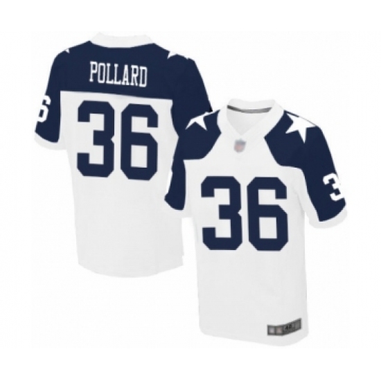 >Men's Dallas Cowboys #36 Tony Pollard Elite White Throwback Alternate Football Jersey