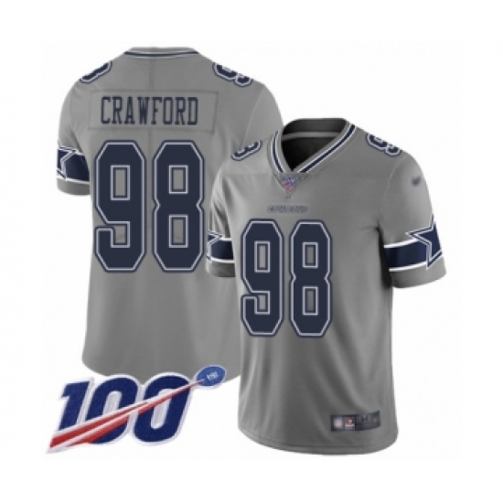 >Men's Dallas Cowboys #98 Tyrone Crawford Limited Gray Inverted Legend 100th Season Football Jersey