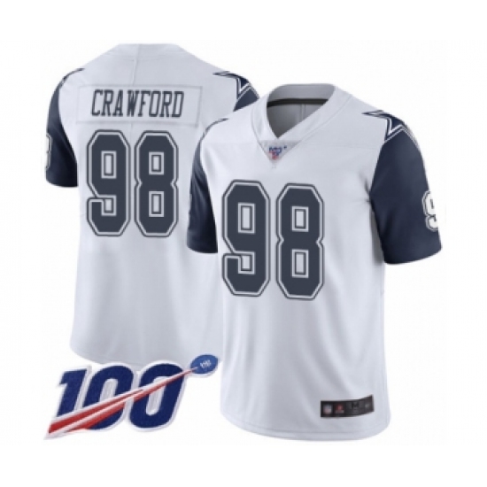 >Men's Dallas Cowboys #98 Tyrone Crawford Limited White Rush Vapor Untouchable 100th Season Football Jersey