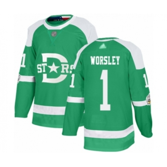Men's Dallas Stars #1 Gump Worsley Authentic Green 2020 Winter Classic Hockey Jersey