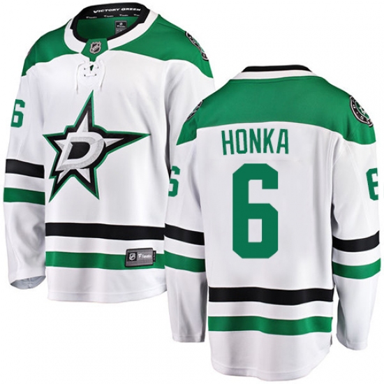 Home>NHL>Dallas Stars>Julius Honka>Men's Dallas Stars #6 Julius Honka Authentic White Away Fanatics Branded Breakaway NHL Jersey
