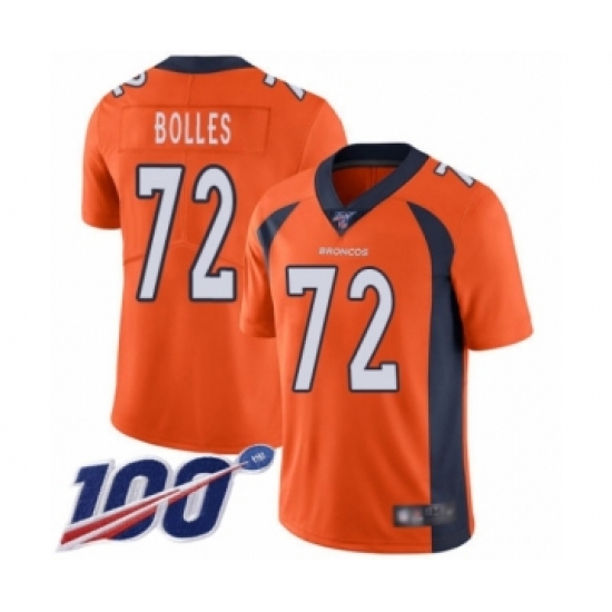Men's Denver Broncos #72 Garett Bolles Orange Team Color Vapor Untouchable Limited Player 100th Season Football Jersey